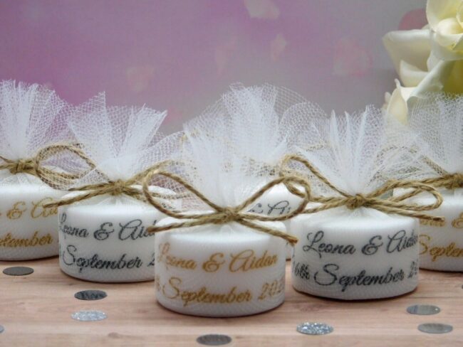 Personalised candles serve as decorative elements and meaningful keepsakes, enhancing the overall ambience and creating lasting memories for the couple and their guests. The choice of candle material is crucial to ensure the candles last longer and burn consistently.